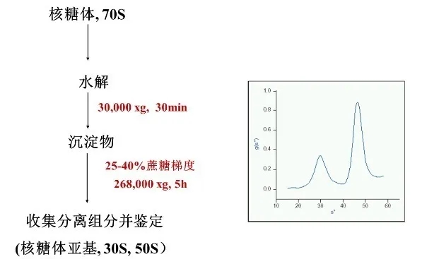 日立超速離心機(jī)速率區(qū)帶離心經(jīng)典的應(yīng)用就是通過蔗糖密度梯度離心,進(jìn)行各種亞細(xì)胞器(核糖體、線粒體、Exosome 等)和病毒顆粒(病毒載體、疫苗等)的純化。例如,我們?cè)谏弦黄谥械玫降?70S 核糖體沉淀,經(jīng)過水解后,可利用蔗糖密度梯度離心,進(jìn)一步分離純化得到 50S 和 30S 的兩個(gè)亞基。具體的實(shí)驗(yàn)流程如下: