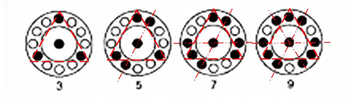 進階配平方法:奇數=3+偶數,如5= 3+2, 3個樣品互成120 夾角放置配平